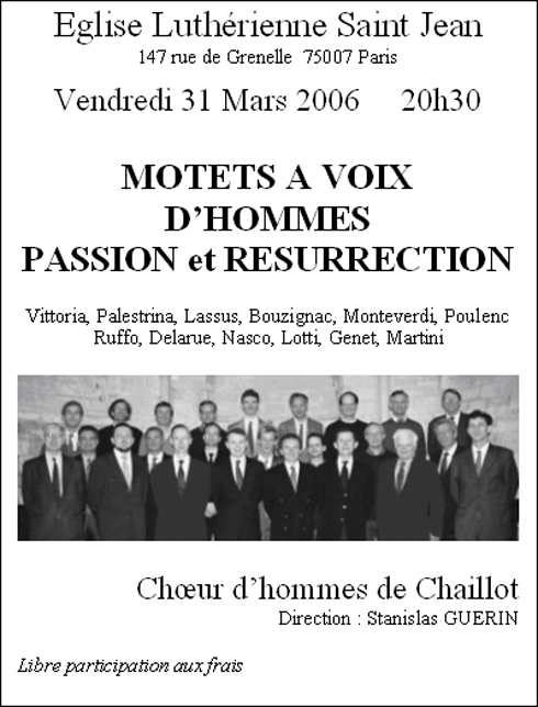 Grégorien, Van Berchem, Verdi, Poulenc, Guérin, Chesnokov |